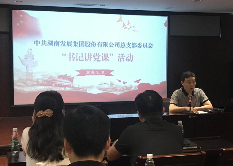 2018年5月18日下午,根据湖南省国资委系统“千名书记讲党课”活动部署,公司党总支开展了以“学习贯彻习近平新时代中国特色社会主义思想和党的十九大精神”为主题的支部书记集中讲党课活动。党总支书记、总部直属三个支部及乐鱼平台_乐鱼(中国)一站式服务平台侨亚党支部书记分别为大家上了一节党课。本次党课活动由公司党总支委员、监事会主席黄志丹主持,总部及乐鱼平台_乐鱼(中国)一站式服务平台侨亚30余名党员参加了学习。